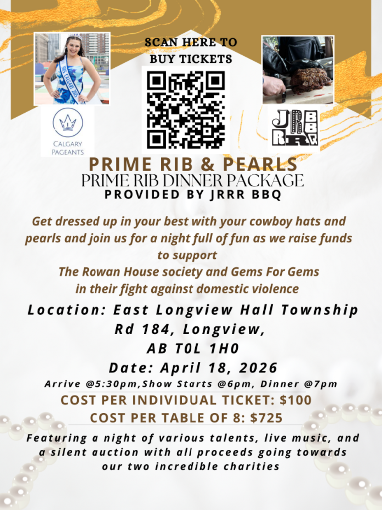 Your ticket includes a signature Prime Rib Dinner provided by JRRR BBQ, admission to the show, and entry into our door prize draws. Hear directly from our partner charities about the vital services they provide while enjoying a night of community and celebration.